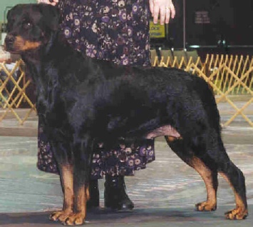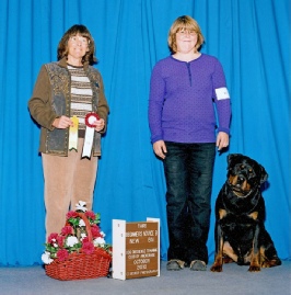 Ch. Black Mariah’s Vixen, CD, RE my first homebred champion. Vixen was a challenge but a great dog for me to learn to show with. In her later years she was a wonderful juniors dog and companion. She loved to show and won several Group placements during her show career.